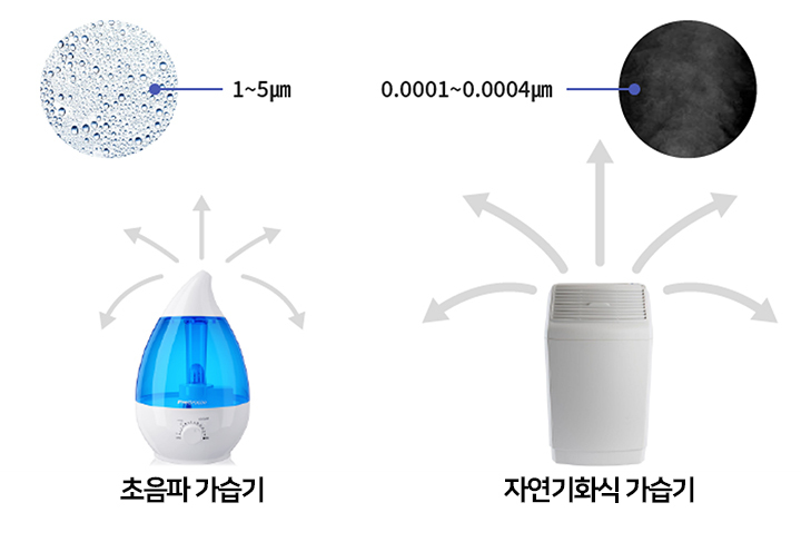 초음파 방식 대비 실내 습도 상승 속도가 느리다.